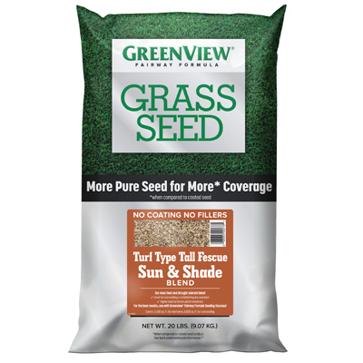 GreenView® 20 lb. Fairway Formula Turf Type Tall Fescue Sun & Shade Blend Grass Seed. It withstands heavy traffic from children & pets. It is top rated for drought resistance and contains only top rated seed varieties. This blend will thrive in both extreme sun and shade environments. This dense growing blend will resist drought, insects, disease, heat, and heavy traffic from children and pets. It is 99.9% weed free and contains 34% Rembrandt Turf Type Tall Fescue, 33% Masterpiece Turf Type Tall Fescue & 33% Picasso Turf Type Tall Fescue.