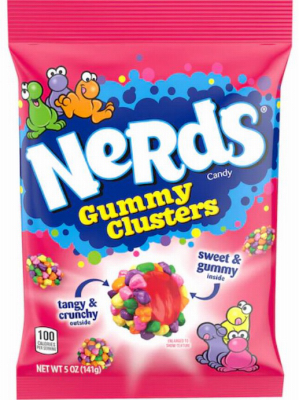 Gummy, crunchy, chewy, 5oz, nerds gummy clusters.